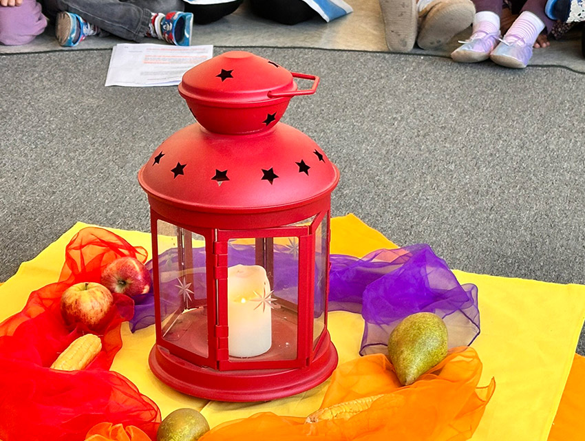 Am Donnerstag, den 2. Oktober 2025, feierten wir eine gemeinsame Andacht mit den Kindern. Im Mittelpunkt stand eine Mitmach-Geschichte rund um das Erntedankfest, bei der sich die Kinder aktiv einbringen konnten. Besonders schön war es, als die Kinder erzählten, in welchen Momenten sie selbst schon einmal geteilt oder Danke gesagt haben – kleine Geschichten aus dem Alltag, die das Miteinander lebendig machen.
